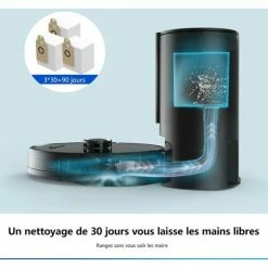 [Recharge automatique]Retourne automatiquement à la base de charge lorsque le nettoyage est terminé ou que la batterie est faible, garantissant qu’elle est