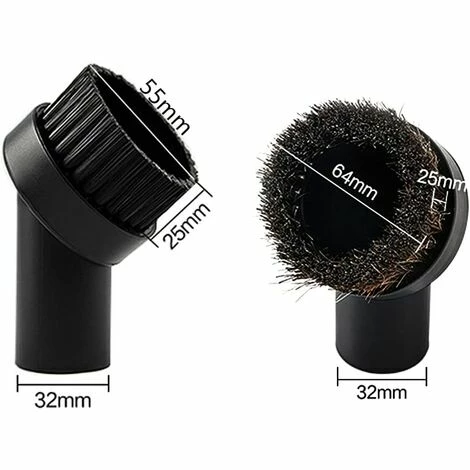 La taille de la brosse aspirateur est de 64 x 25 mm et 55 x 25 mm, et le diamtre intrieur de l’interface est de 32 mm.