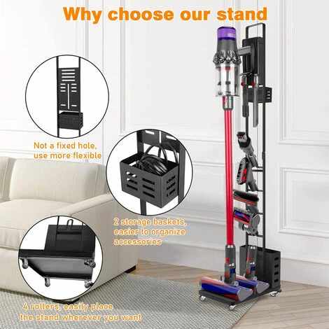 2. En raison de son poids léger et de sa forte stabilité, l’ensemble du support peut être transporté à la position préférée dans la maison sans qu’il soit nécessaire de percer des trous dans le mur pour rendre Dyson dans une position fixe. Il est également possible de charger la batterie de l’aspirateur sans la sortir du support.