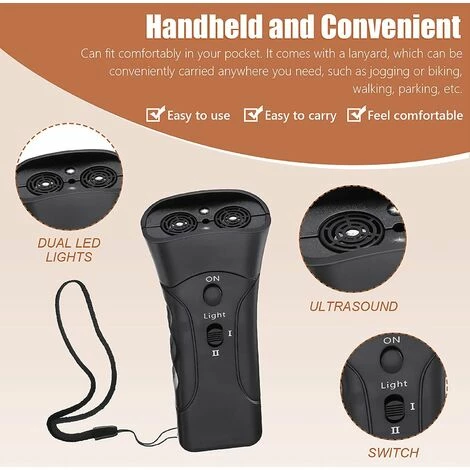 Dog Repeller Ultrasonic Handheld Dual Channel Anti-Barking 3 in 1 Dog Training Tool with LED Flashlight