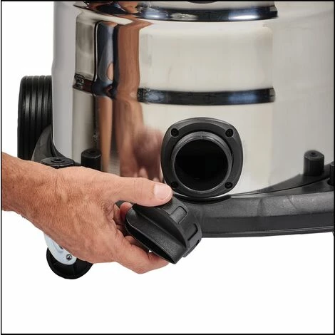 La puissance d’aspiration est ajustable en continu grâce au dispositif de réglage de la vitesse, et le raccord de soufflage permet de souffler dans les zones difficiles d’accès. L’aspirateur eaux et poussières est également très utile aux bricoleurs expérimentés pour nettoyer leurs chantiers, ateliers ou garages : sa prise de courant asservie automatique (230 V, 2 200 W maximum) intégrée permet en effet le branchement d’outils de bricolage électriques. La cuve en acier inoxydable robuste a une capacité de 25 litres. Un bouchon de purge permet d’évacuer facilement l’eau aspirée.