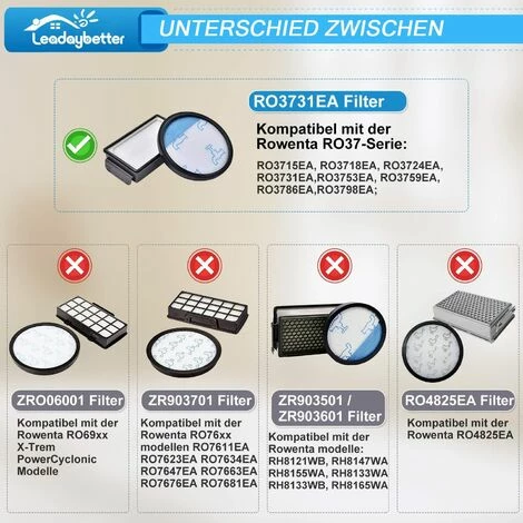 Kit de filtre Leadaybetter pour la série Rowenta, Moulinex, Tefal Compact Power Cyclonic, remplace ZR005901.Compatible avec Rowenda RO3718EA, RO3724EA, RO3731EA, RO3753EA, RO3786EA, RO3798EA; Moulinex MO3718PA, MO3723PA, MO3751PA, MO3774PA, MO3786PA; Tefal TW3724RA, TW3731RA, TW3753EA, TW3786RA.
