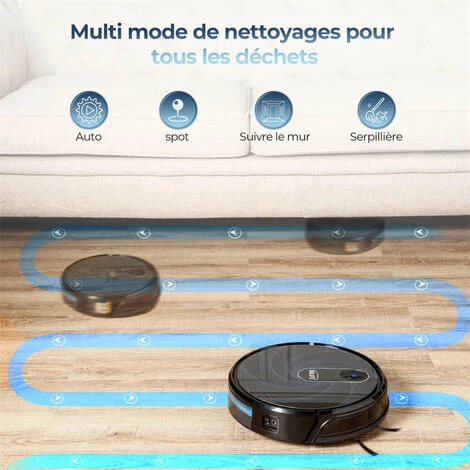 Grâce à son hauteur de 6,8cm du robot aspirateur, il est facile de passer et nettoyer le canapé, le lit, et les zones difficiles à nettoyer de la maison.