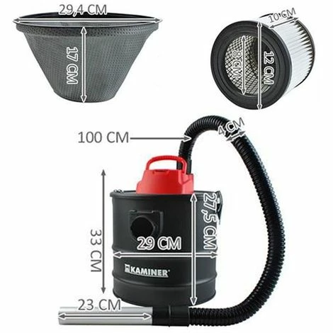 Le conteneur en acier inoxydable garantit sa longévité et sa résistance. Des crochets en métal permettent de fermer et d’ouvrir la cuve. Le tuyau d’aspiration en acier galvanisé reste suffisamment souple pour aspirer les cendres dans le poêle à bois ou la cheminée.