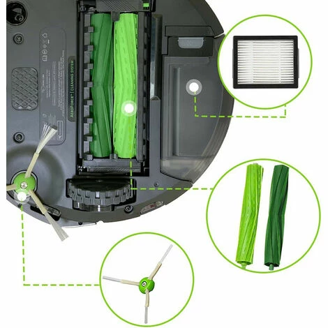 KIT Pack de 10 accesoires pour iRobot Roomba Aspirateur (Brosses + filtres) séries i3/i3+/i4/i7/i7+/E5/E6/E7