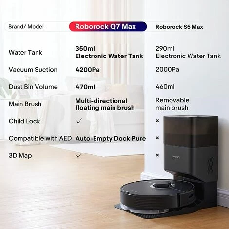 Roborock Q7 Max+ Aspirateur Robot Laveur 4200 Pa ,Robot Aspirateur à Navigation Lidar Cartographie WiFi/Alexa/APP(Noir)
