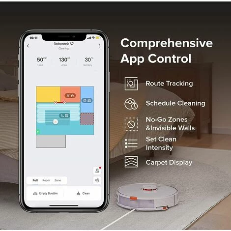 Roborock S7 Aspirateur Robot Puissant 2500Pa Robot LiDAR Navigation – APP- Blanc