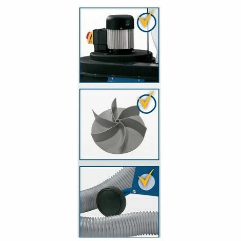 – Puissants et efficaces, il aspire les copeaux, les sciures et poussières sur les machines et dans l’atelier