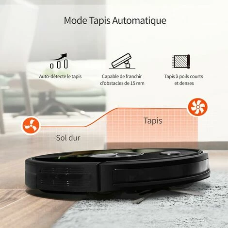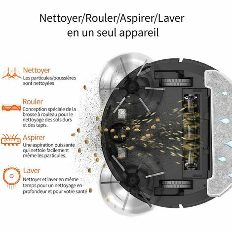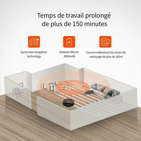 – Laveur et nettoyage 2 en 1 : Découvrez un aspirateur automatique moderne, pour un nettoyage aisé partout où vous en avez besoin : une aspiration seule ou bien une aspiration accompagnée d’un lavage à votre choix. Grâce à sa serpillière en microfibre, il ne nécessite pas l’utilisation de détergents ou autres contaminants.– Autonomie maximale 150min en mode eco : Suffisant pour un nettoyage et lavage complet dans un appartement de 150 m². Lorsque le niveau de la batterie est faible, le robot retourne automatiquement à sa base de chargement.