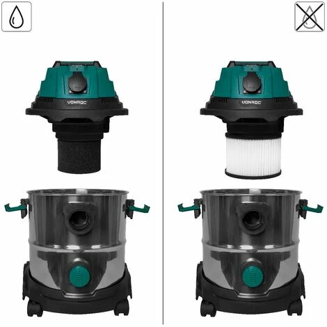 Tout ce dont vous avez besoin pour cet aspirateur multi usage peut être commandé rapidement et facilement. Commandez par exemple le VC805AA de VONROC, le lot de 5 sacs à poussière en papier, le filtre HEPA lavable VC806AA, adapté à l’aspiration à sec ou le lot de 3 filtres en éponge VC807AA, adapté à l’aspiration humide.