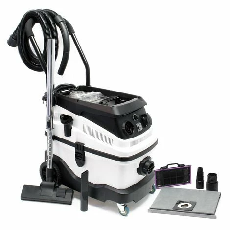 L’aspirateur dispose d’un système de filtration efficace qui se compose de trois niveaux. Dans le premier filtre, la poussière grossière se retient dans le sac à poussière. Ensuite, les saletés passent dans la deuxième chambre de filtration, qui contient un réservoir d’eau d’une capacité de 30 litres. Sous l’effet de l’eau, la poussière est liée et maintenue dans la deuxième chambre de filtration. Lors de la dernière étape, l’air est dirigé vers le filtre HEPA et élimine par ce biais, les poussières fines restantes. Finalement, l’air triplement purifié se dégage de l’aspirateur humide et sec.