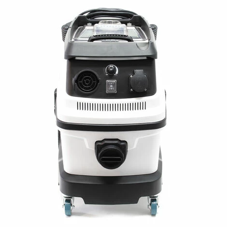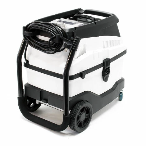 Grâce au contrôle du niveau de liquide dans la deuxième chambre de filtration, vous gardez toujours un œil sur la quantité d’eau dans le réservoir. Si le réservoir est trop plein, l’aspirateur dispose d’une fonction d’arrêt automatique qui s’active lorsque le niveau de liquide est trop élevé. Les roues avant et arrière de l’aspirateur ainsi que la poignée à étrier assurent un transport sans difficultés. Très pratique, l’aspirateur est équipé d’une prise pour outils intégrée de 2000 W avec mise en marche automatique. Une fois l’appareil électrique raccordé à l’aspirateur et relié à un tuyau d’aspiration, une aspiration automatique de la poussière a lieu.